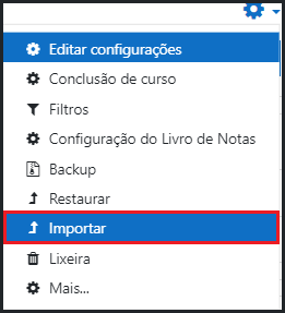 Existem várias maneiras de importar conteúdo(s) de disciplina(s), porém, veremos a seguir a importação de recursos e atividades específicas de uma disciplina para outra. Isso é muito útil quando se deseja apenas transferir partes selecionadas do conteúdo, como questionários, lições, fóruns de discussão ou arquivos de recursos.