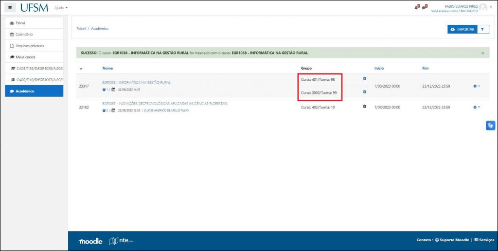 Estando devidamente importada e sincronizada pelo sistema, será possível realizar a mesclagem de turma(s).
