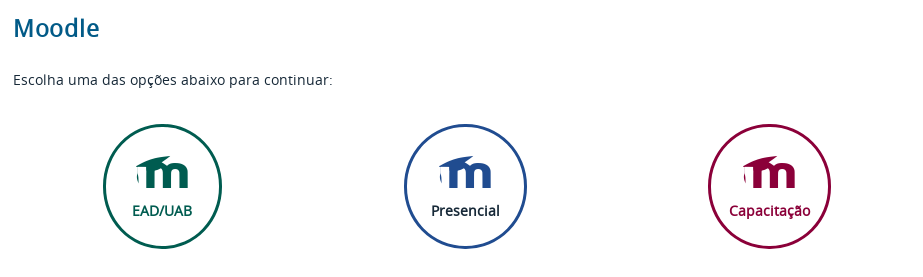Em todos os casos, você estará na página em que poderá escolher qual a opção que deseja, se é o Moodle EAD/UAB, Presencial ou Capacitação.