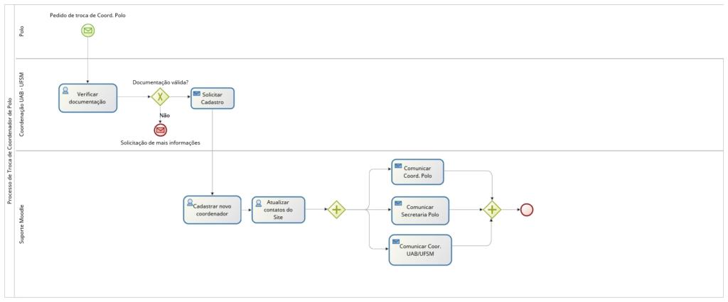Sempre que a prefeitura do polo substituir um coordenador de polo, ela deve avisar a CTE/UFSM através de um e-mail para o coordenador UAB/UFSM com as seguintes informações do novo responsável: