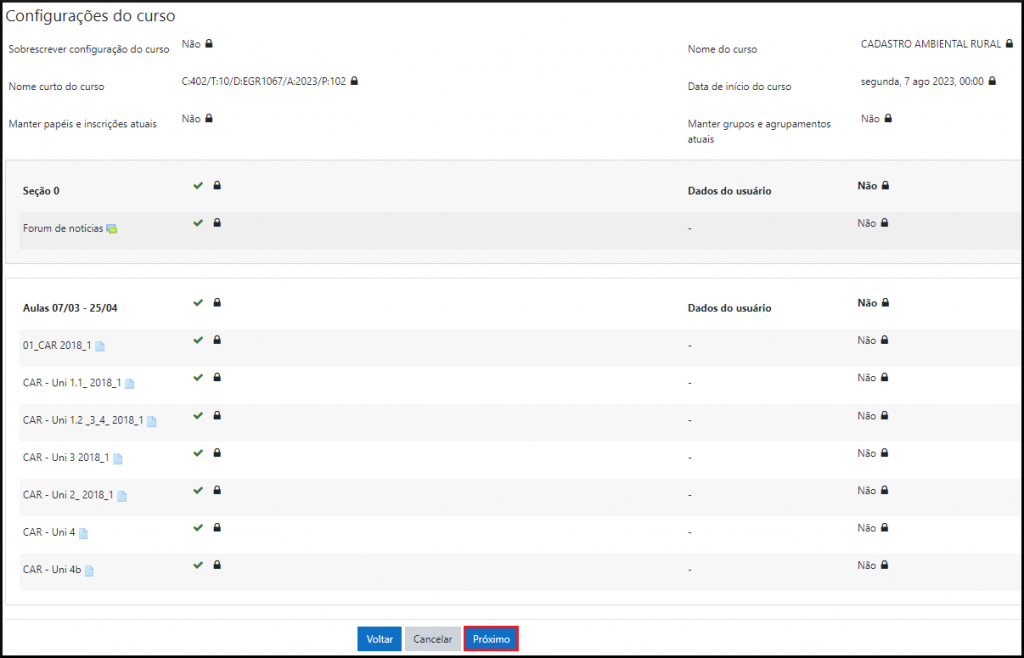 12. Agora serão exibidas informações referentes ao conteúdo da disciplina. Clique em “Próximo”.