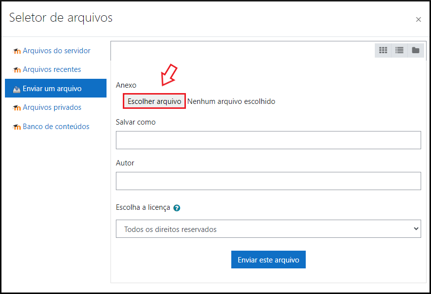 5. Na janela de seleção de arquivo, clique em “Escolher arquivo”.