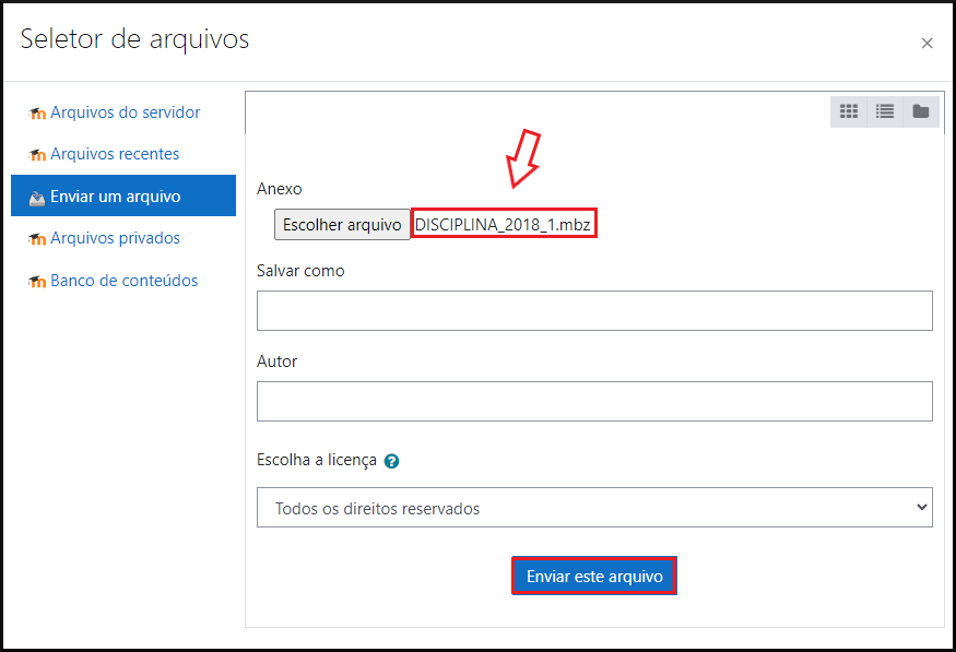 7. Observe que o nome de seu arquivo está disponível para confirmação. Estando de acordo, clique em “Enviar este arquivo.
