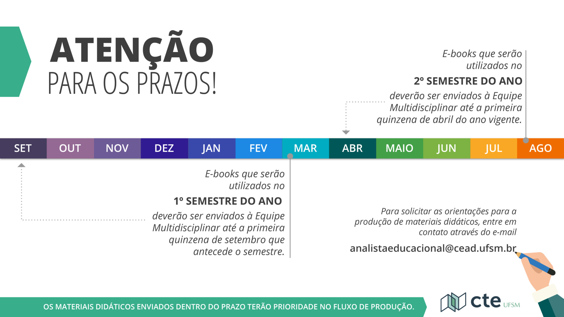 A Coordenadoria de Tecnologia Educacional disponibiliza uma Equipe Multidisciplinar, que auxilia e oferece suporte no desenvolvimento de materiais didáticos para UAB/UFSM e para cursos semi-presenciais e presenciais da UFSM, bem como para demais setores e unidades da Universidade.
