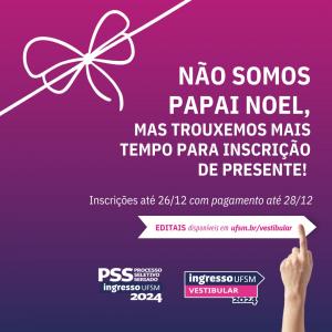 A Pró-Reitoria de Graduação da UFSM divulgou nesta sexta-feira (01) o edital e o Manual do Processo Seletivo Seriado UFSM 2024. A prova será aplicada no dia 13 de janeiro, das 13h30min às 16h30min, nas cidades de: