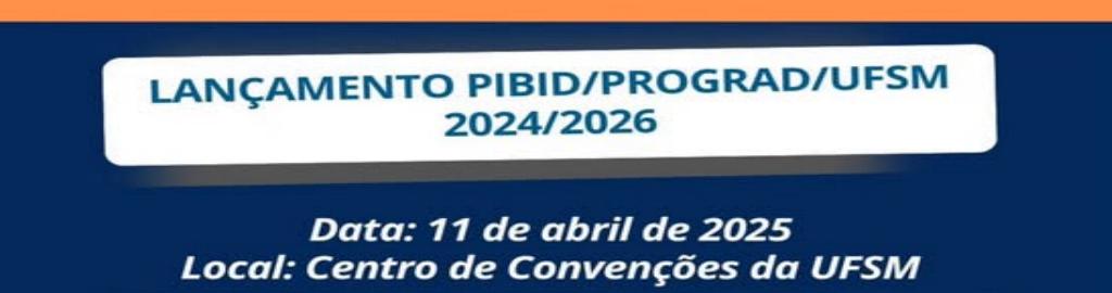O Lançamento Pibid/Prograd/UFSM 2024/2026 acontecerá no dia 11/4 (sexta-feira), às 8h30min, no Centro de Convenções da UFSM, no Campus Sede em Camobi.