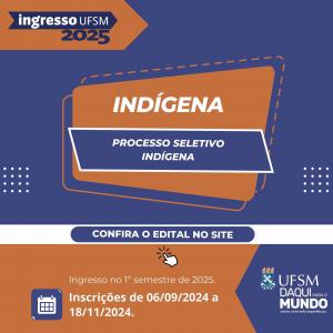 A Pró-Reitoria de Graduação (PROGRAD) publica, anualmente, o Edital do Processo Seletivo Indígena, de acordo com a Resolução N. 002/2018/UFSM.
