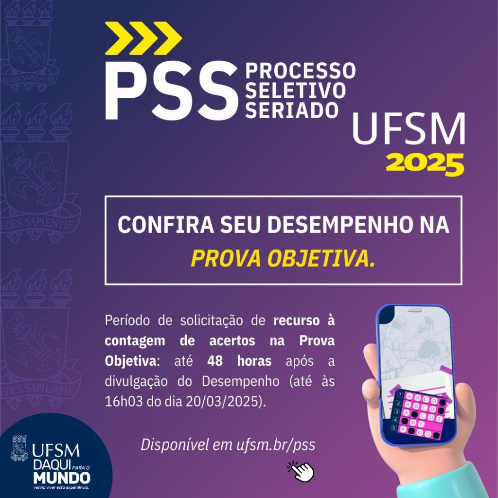 Acompanhe periodicamente o site ufsm.br/pss para não perder os prazos e procedimentos das futuras publicações!