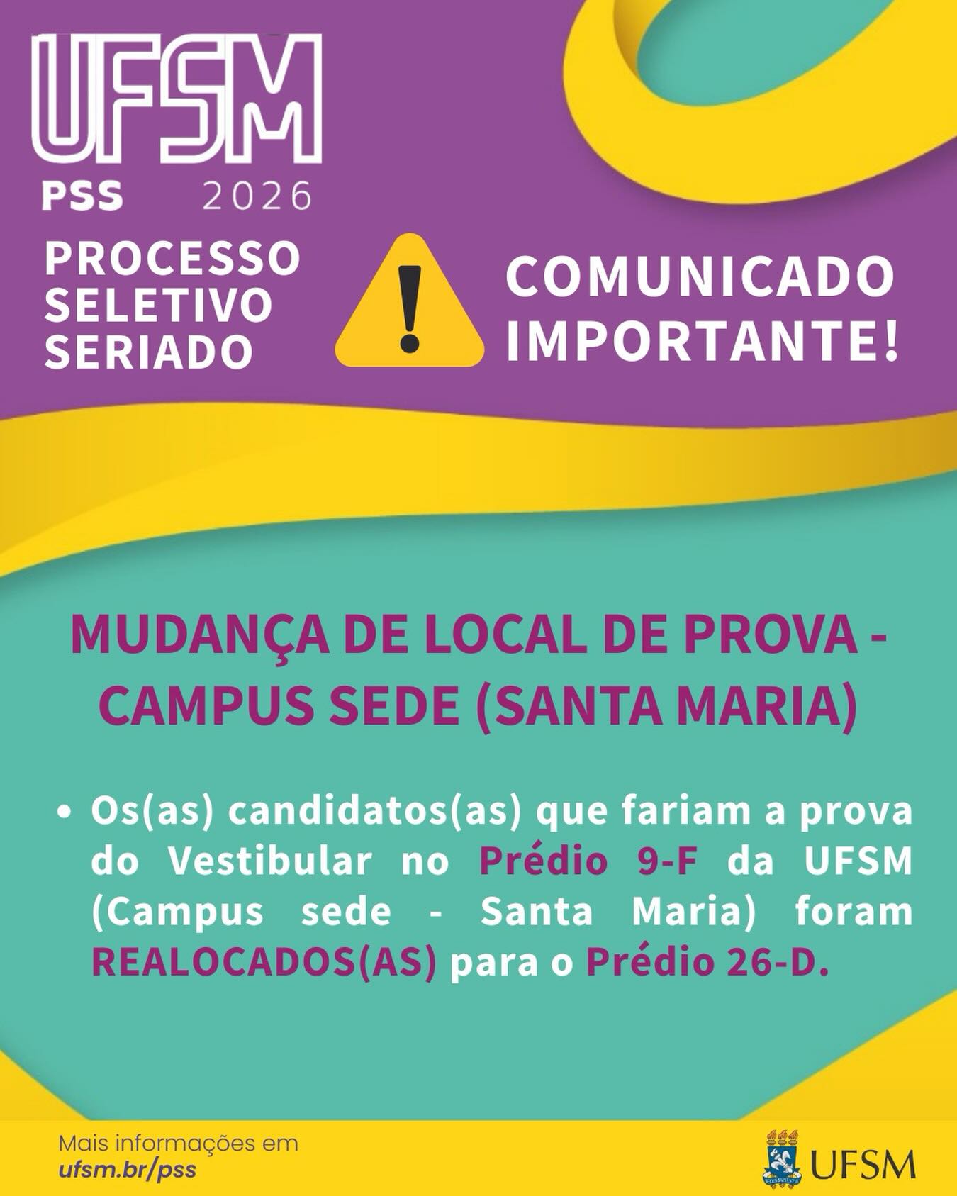 - Abertura de inscrições ao Edital de Vagas Complementares em ufsm.br/prograd, para quem realizou algum Enem completo nas últimas 5 edições e obteve 300 pontos ou mais na redação.