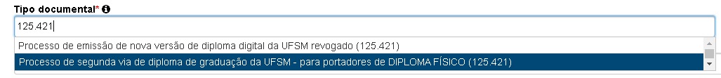 3 – Abrir processo PEN (https://portal.ufsm.br/documentos/publico/processo/consulta.html) com o tipo documental 125.421, conforme imagem abaixo, fazendo o login no canto superior direito da tela, com o número de matrícula da graduação e senha: