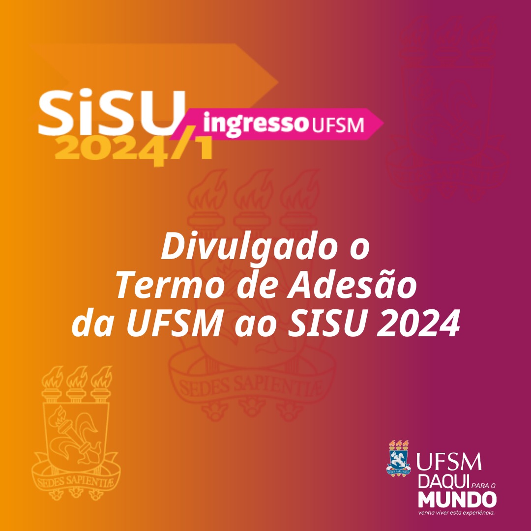 A Universidade Federal de Santa Maria publicou seu Termo de Adesão ao Sistema de Seleção Unificada (SiSU) para o ano de 2024. O documento, disponível no site ufsm.br/sisu, traz os cursos ofertados pela UFSM e suas respectivas vagas, organizadas por cota e ampla concorrência.