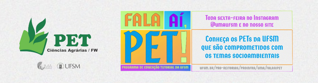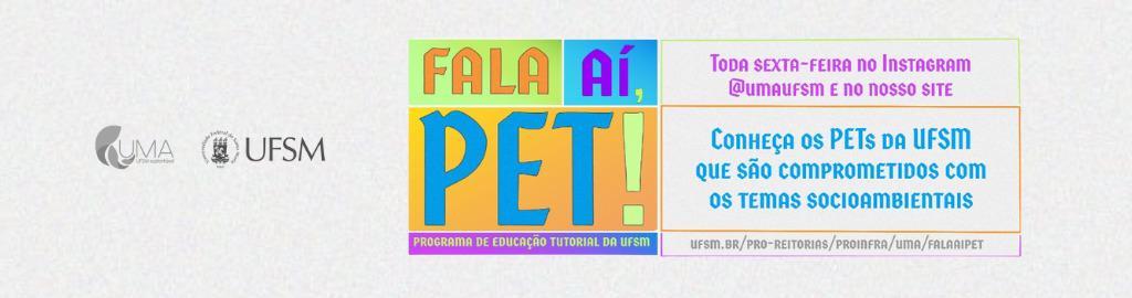 O Fala A´´i, PET! é um quadro do UMA UFSM que apresenta os Programas de Educação Tutorial (PET) da UFSM. Temos por objetivo divulgar os PET que trabalham com temas socioambientais, além de popularizar o trabalho desenvolvido por eles.