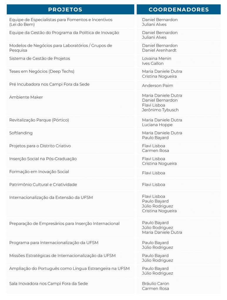 A maioria dos projetos serão executados por meio por meio de editais, iniciativas que trarão uma série de oportunidades para os docentes, técnicos administrativos e discentes, bem como parceiros externos. Abaixo a relação de projetos aprovados: