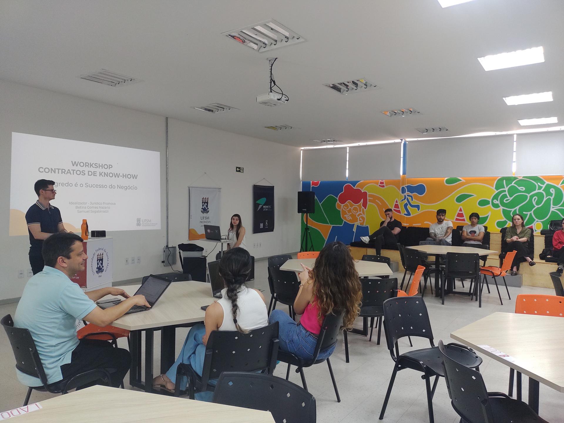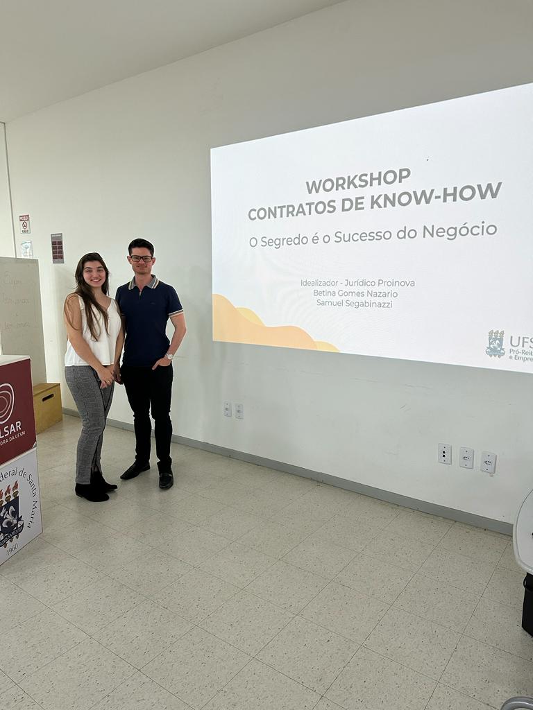 Durante a manhã desta segunda-feira (30), os membros da Coordenadoria de Transferência de Tecnologia e Propriedade Intelectual da Proinova, Samuel Segabinazzi e Betina Gomes Nazario, realizaram com a equipe um workshop sobre contratos de Know-How. Durante a atividade, foram apresentadas as características e as cláusulas desse tipo de acordo.