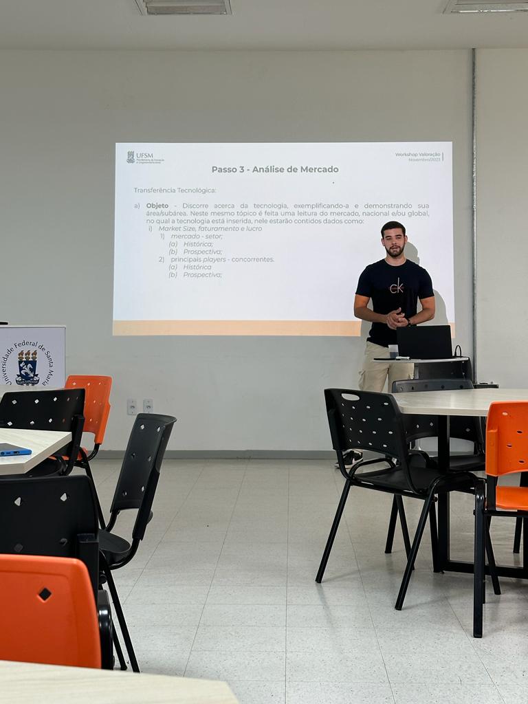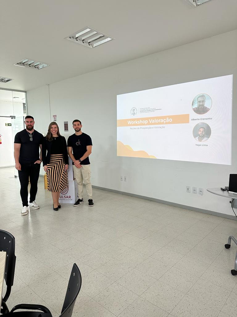 Durante a manhã de hoje, 23, a equipe da Proinova participou de um workshop sobre valoração de tecnologias, realizado pelos membros do Núcleo de Prospecção e Valoração, Alberto Granzotto e Yago Lima.  A atividade teve como objetivo apresentar o método de valoração de tecnologias realizado no Núcleo de Prospecção e Valoração da Proinova.