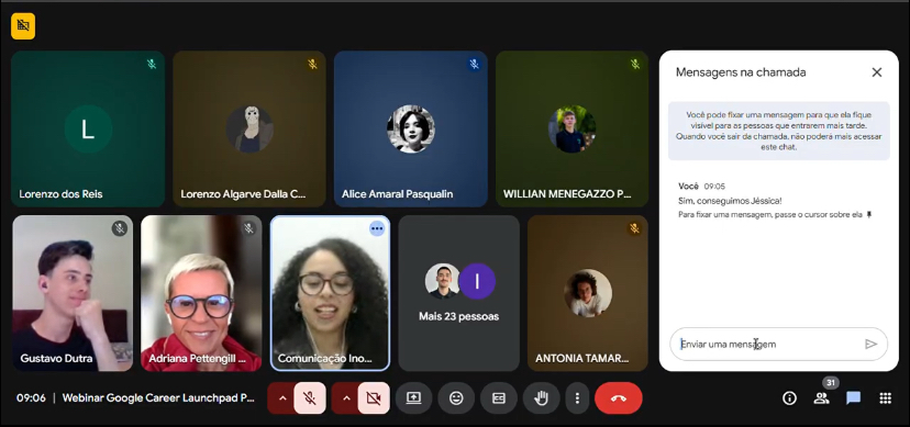 No dia 22 de outubro, um webinar com a gerente do Programa de Aprendizado do Google Cloud no Brasil, Adriana Pettengill, marcou o início das atividades de engajamento para a etapa final do curso, apresentando aos alunos os detalhes sobre a Job Fair e as possibilidades de inserção profissional.