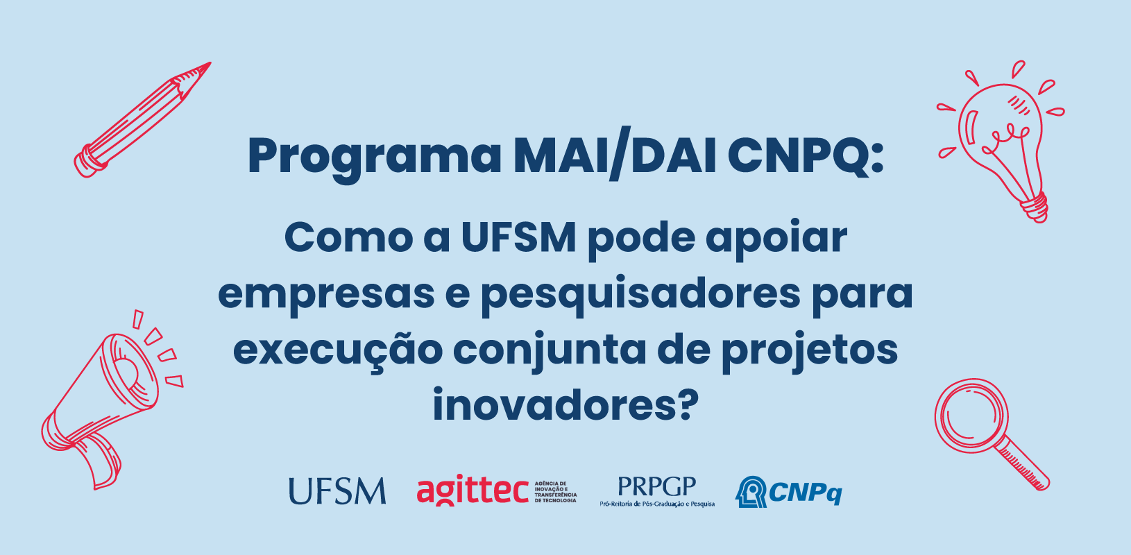 Durante o evento, o tema será o Programa de Mestrado e Doutorado para Inovação (MAI/DAI), onde o aluno de pós-graduação recebe uma bolsa do CNPq para o desenvolvimento de projetos junto a uma empresa parceira, que apresenta a demanda tecnológica que precisa de solução.