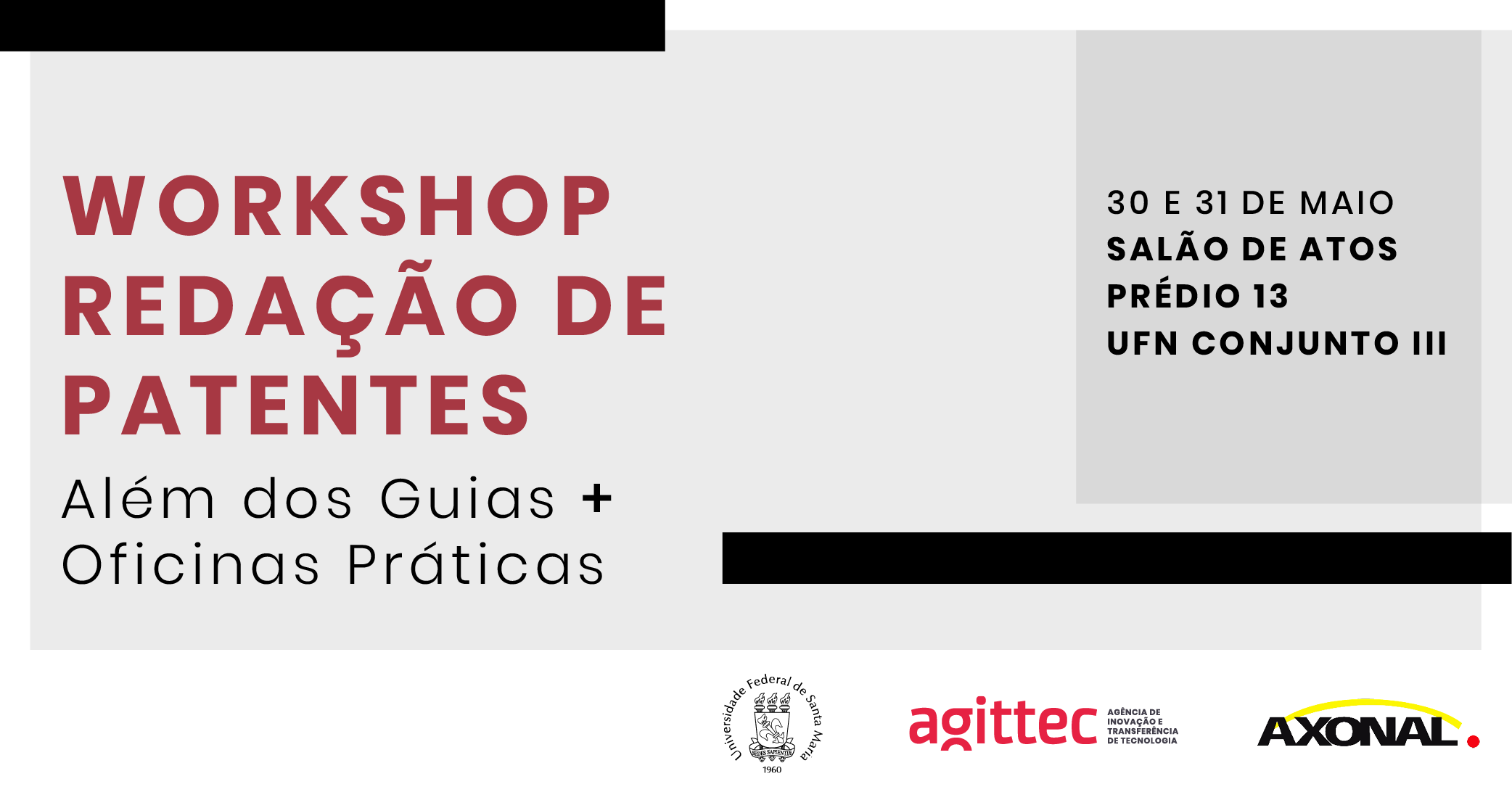 Workshop básico/intermediário, com 12 horas de duração, promovido pela Axonal conjuntamente com diversas organizações do ecossistema de empreendedorismo e inovação. Tem como objetivo capacitar os participantes a darem primeiros passos na redação de patentes, incluindo a realização de buscas, identificação e leitura de documentos relacionados, definição do escopo da invenção, decisão sobre formas de proteção, elaboração de quadros reivindicatórios e relatórios descritivos. O primeiro dia será reservado para revisão de aspectos conceituais sobre patentes e seu impacto na estratégia de redação e de tramitação. No segundo dia, serão realizadas atividades práticas guiadas para exercitar a lógica de leitura e redação. Também serão realizadas oficinas de busca de patentes e mapeamento de segmentos tecnológicos, com base em informações contidas em patentes.