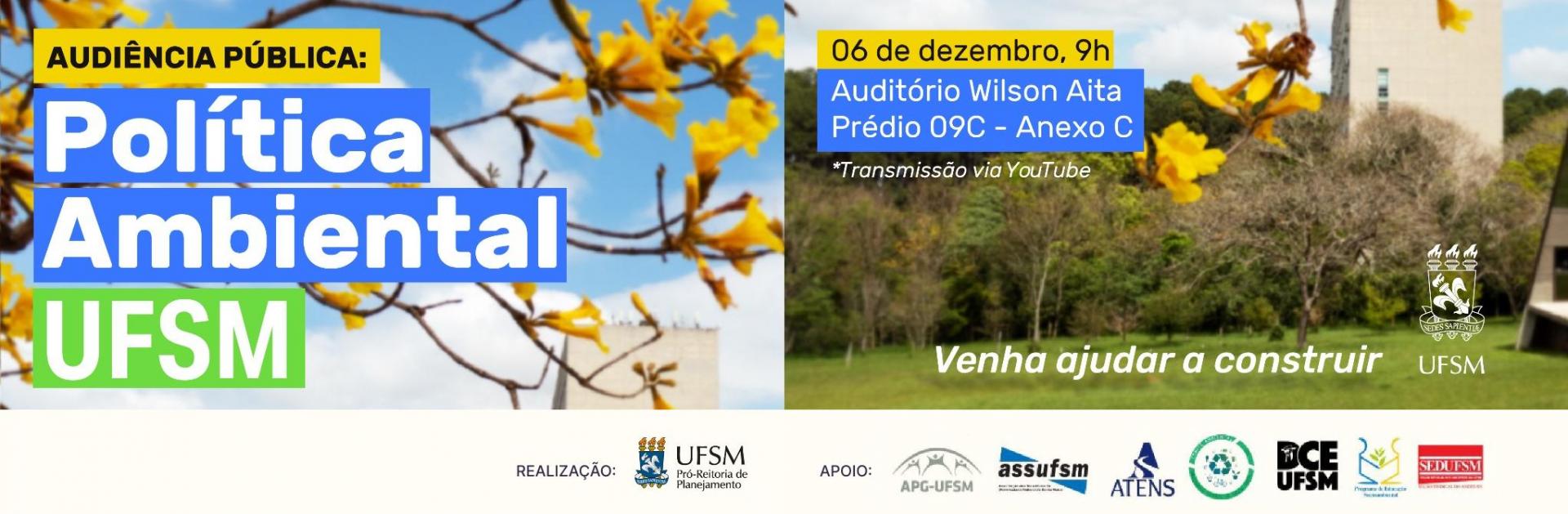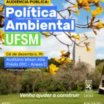 A Universidade Federal de Santa Maria (UFSM) convida a todos para participar da Audiência Pública “Juntos pela Política Ambiental”, que discutirá a minuta da Política Ambiental da instituição. A minuta pode ser acessada neste link.