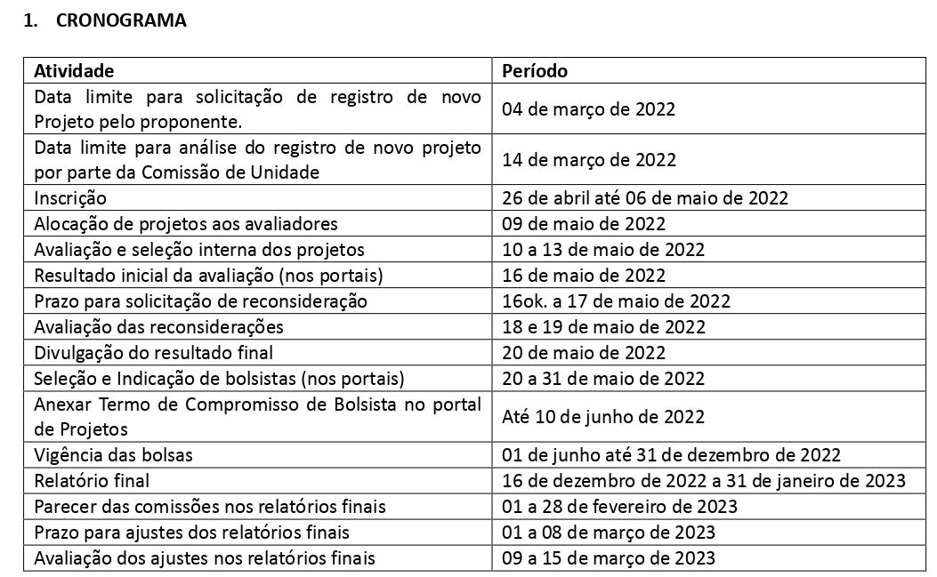 A CIC/PRPGP informa que este edital é restrito às unidades de ensino que não tiveram demanda qualificada para utilização da totalidade dos recursos disponibilizados ao FIPE 2022, as quais seguem abaixo: