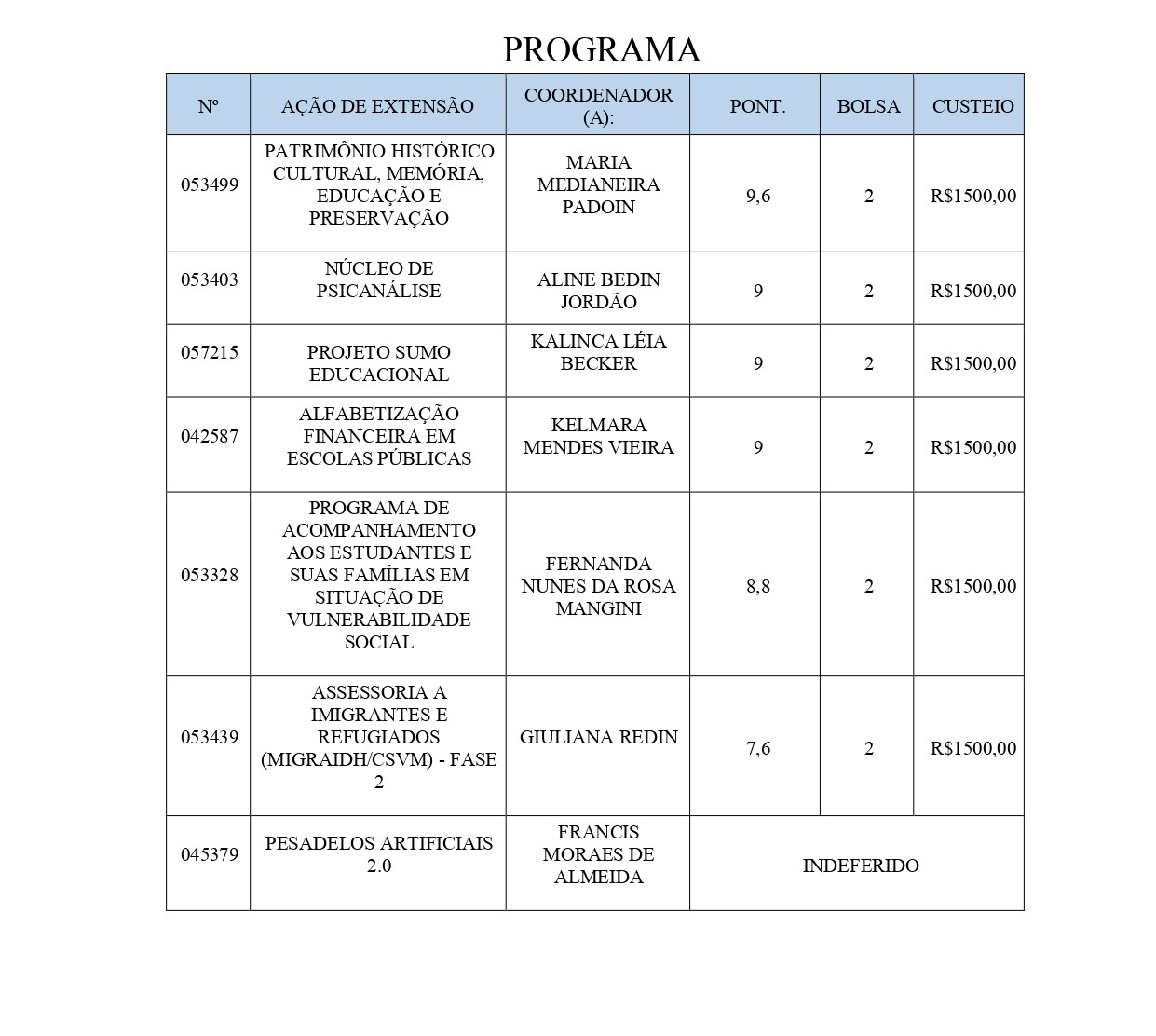 Resultado final Edital FIEX 2022 CCSH