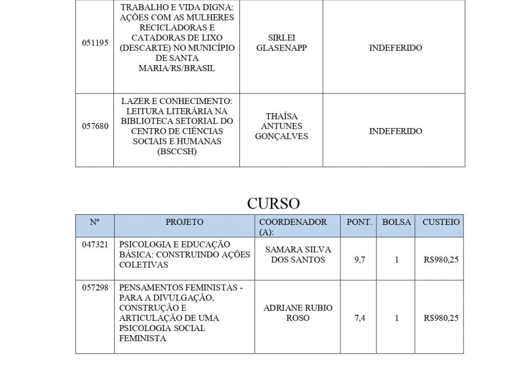 A Comissão de Extensão do CCSH em atendimento ao Edital FIEX/2022, divulga abaixo listagem oficial, por pontuação, dos contemplados no Fundo de Incentivo à Extensão 2022, após avaliação dos recursos.