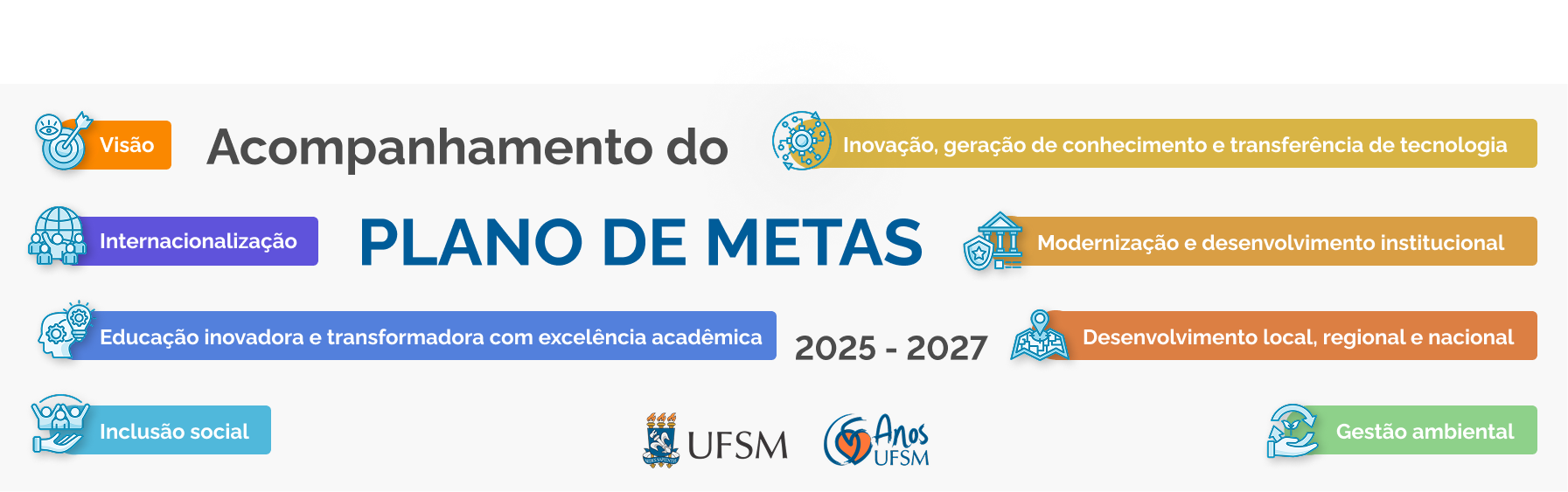 Em 2024, a UFSM deu início ao processo de revisão do Plano de Metas, alinhado aos objetivos estratégicos institucionais. Essa revisão abrange a análise dos indicadores de desempenho, a definição de novas metas e a reavaliação das estratégias adotadas para o próximo ciclo de planejamento.