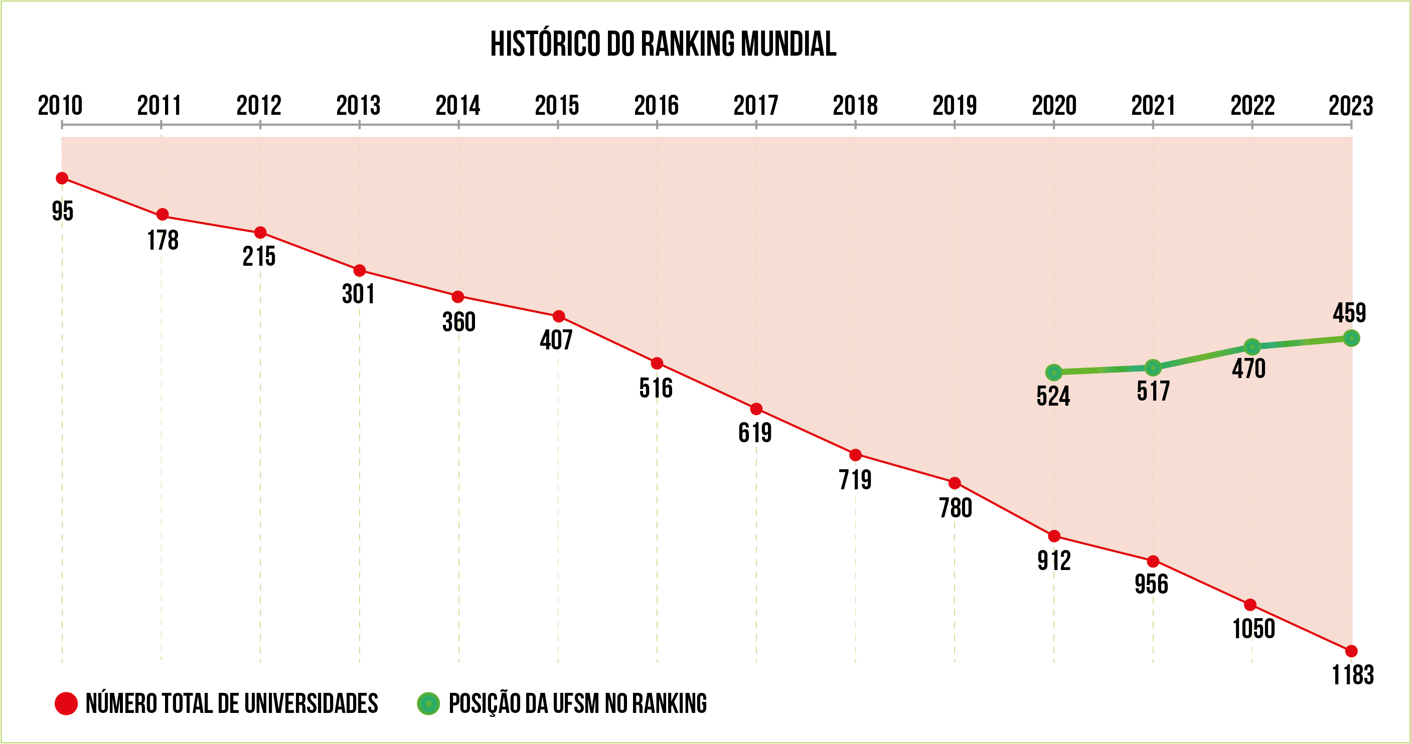 O destaque foi, pelo segundo ano consecutivo, para o pilar Ensino, onde a UFSM subiu 51 posições no mundo, indo de 612 para 561.