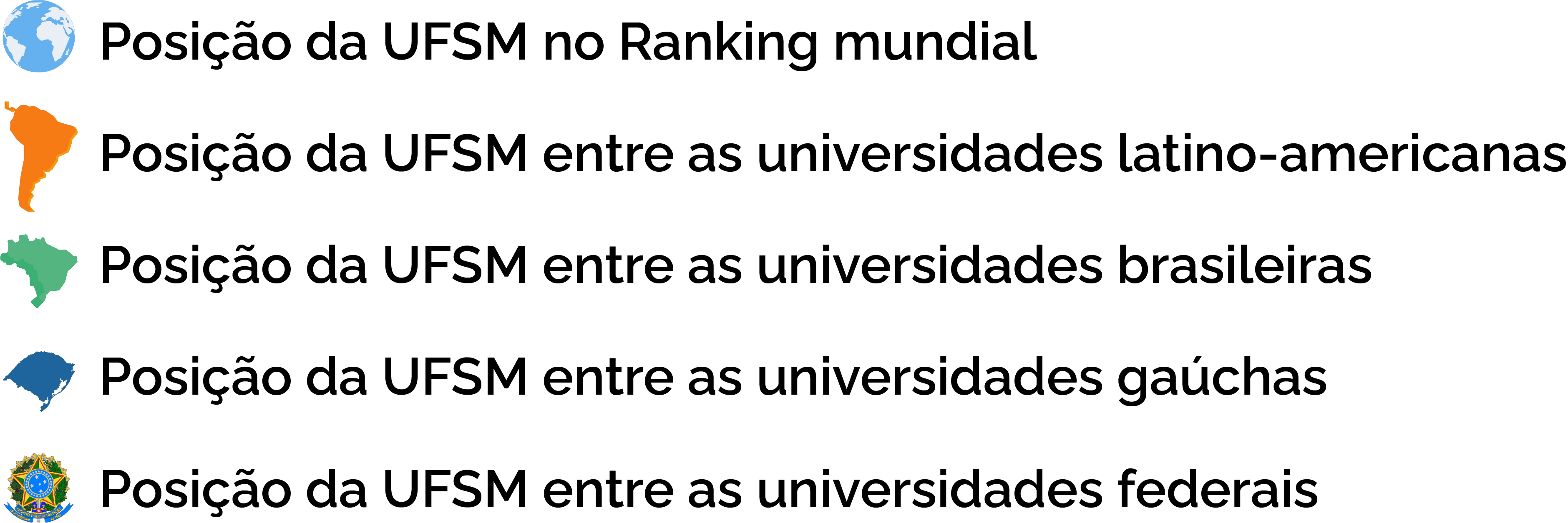 A UFSM figura nos principais rankings universitários do mundo. Nesta página vamos listar os resultados anuais apresentados pela instituição em cada ranking.