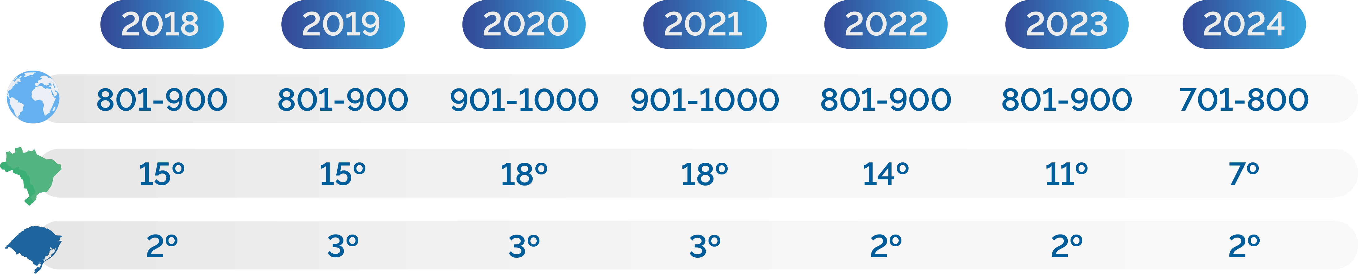 O Ranking THE World University Ranking by Subject, utiliza os mesmo 5 pilares em 18 indicadores de desempenho usados no World Ranking 2024.