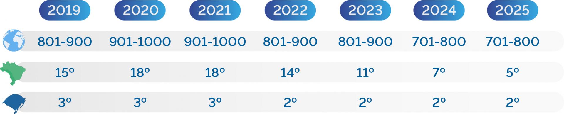 O destaque foi, pelo segundo ano consecutivo, para o pilar Ensino, onde a UFSM subiu 51 posições no mundo, indo de 612 para 561.