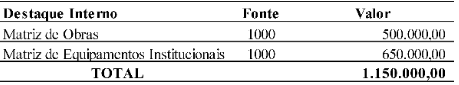 3.4.5 Os demais investimentos constantes dos itens vi) OCC do Tesouro – UFSM, cujas matrizes sejam destaques orçamentários (D), no valor de R$ 1.150.000,00 (Um milhão, cento e cinquenta mil reais) serão destinados aos destaques internos a que se referem, conforme Tabela 7.