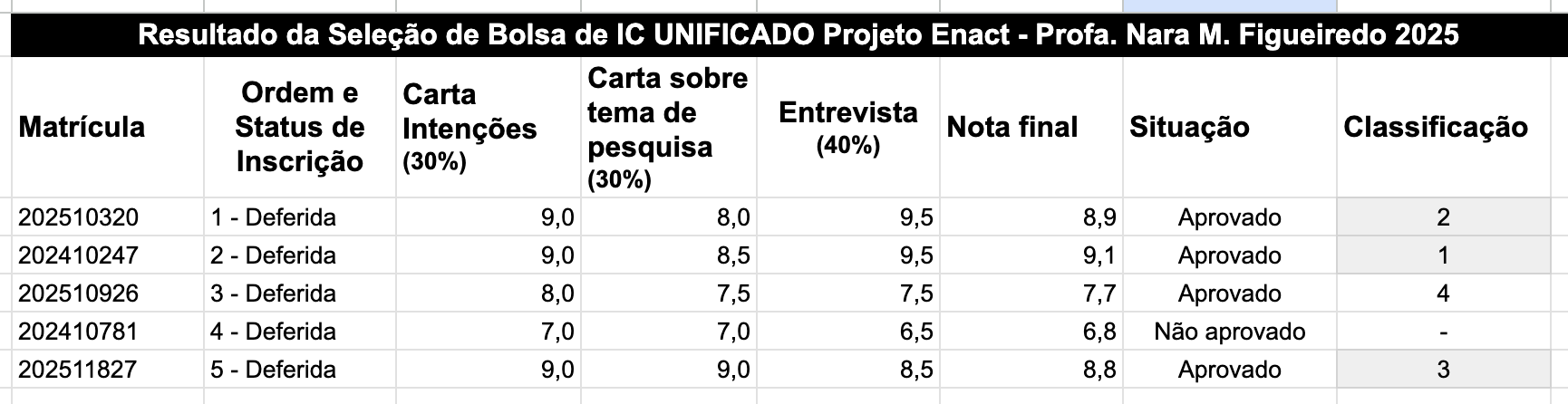 Abaixo você está visualizando todas as bolsas de IC do Edital 017/2025 IC UNIFICADO disponíveis nesta área de conhecimento, ordenadas por subárea de classificação do CNPq e por docente. Você poderá escolher a subárea com a qual tem afinidade ou com a qual deseja trabalhar ou, ainda, poderá escolher o docente com quem deseja trabalhar. O detalhamento das informações para a seleção, tais como cronograma de inscrição, exigências e etapas da seleção do bolsista e outras características do projeto você obterá clicando no link do edital específico. O resultado final da seleção está disponível após concluída a etapa de seleção por parte do docente.