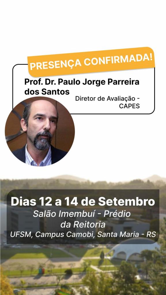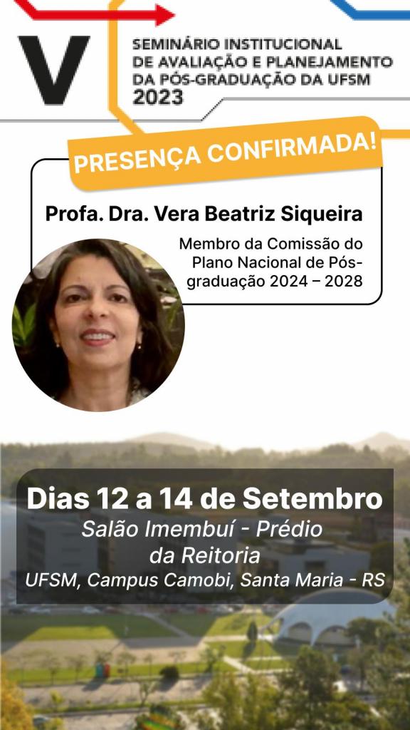 O seminário tem por objetivo reunir os coordenadores de cursos de pós-graduação Stricto sensu para discutir os rumos da pós-graduação da UFSM no cenário nacional e internacional. Contará com a participação de representantes da CAPES e pesquisadores envolvidos na elaboração do novo Plano Nacional de Pós-graduação. Estão previstas sessões temáticas de boas práticas sobre temas de interesse para a pós-graduação.