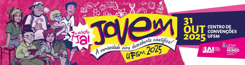 As Pró-reitorias de Pós-Graduação e Pesquisa (PRPGP) e de Extensão (PRE) da Universidade Federal de Santa Maria (UFSM) publicam o EDITAL 025/2025 – JAI Jovem, dando ciência à comunidade em geral das normas e procedimentos que nortearão a realização da 7ª Jornada Acadêmica Integrada Jovem (JAI Jovem) da UFSM.