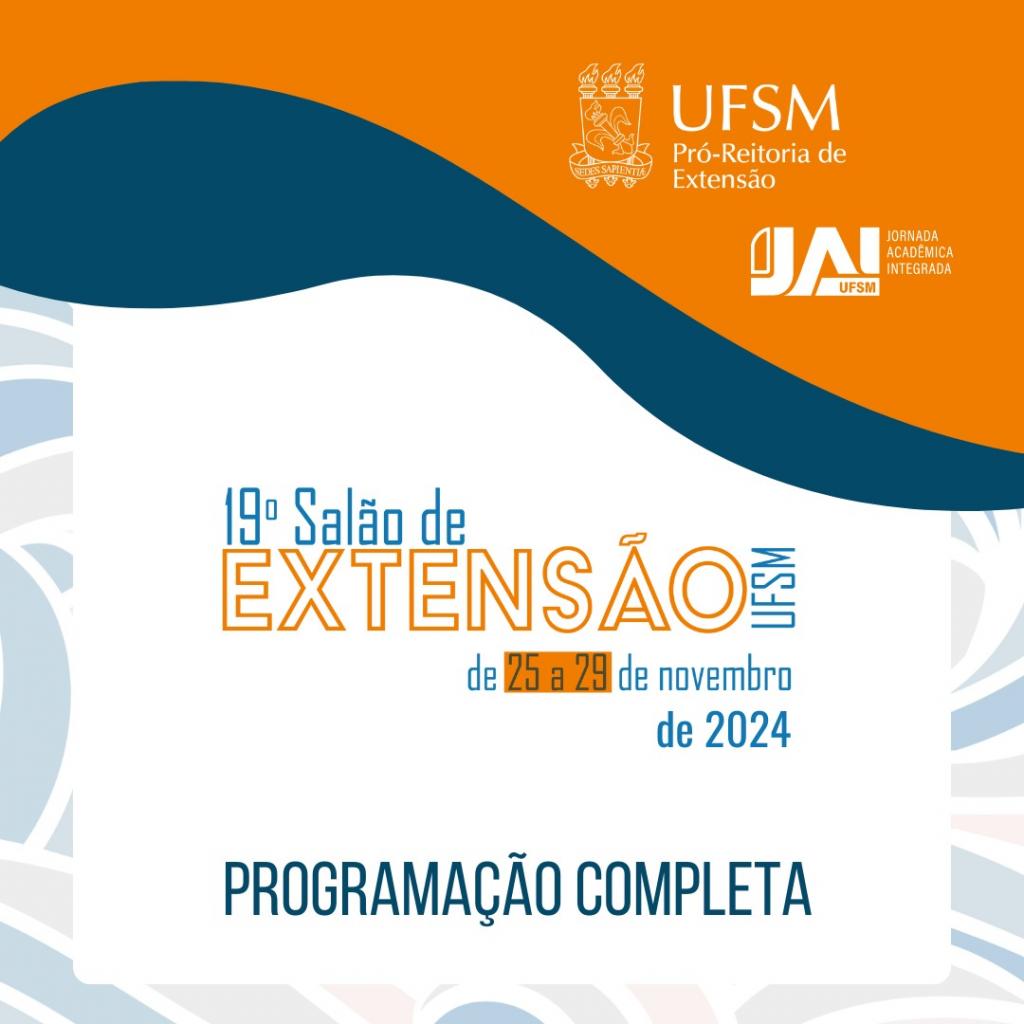 O 19° Salão de Extensão acontece entre os dias 25 e 29 de Novembro de 2024, promovido pela Pró-Reitoria de Extensão (PRE), em paralelo à Jornada Acadêmica Integrada (JAI). O evento, que tem como foco divulgar e fomentar discussões sobre os trabalhos acadêmicos produzidos a partir de práticas extensionistas, conta com apresentações de trabalhos, mesas redondas, oficinas e premiações.