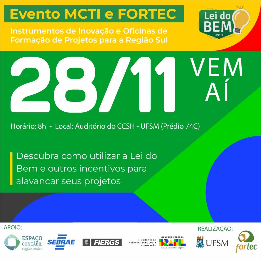 Participe do Evento MCTI e FORTEC – Instrumentos de Inovação e Oficinas de Formação de Projetos para a Região Sul.