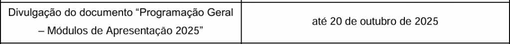 Aguarde a divulgação dos módulos de apresentação 2025: