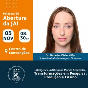A Jornada Acadêmica Integrada da UFSM é um evento científico promovido pelas Pró-Reitorias de Pós-graduação e Pesquisa, de Extensão, de Graduação e de Inovação e Empreendedorismo. A JAI composto de palestras temáticas e plenárias, de apresentações orais e em banners, e de eventos satélites promovidos pelas unidades de ensino da UFSM.
