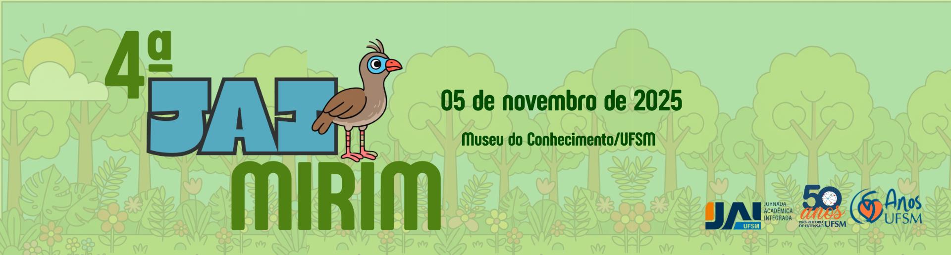 A Jornada Acadêmica Integrada (JAI) Mirim busca oferecer aos(às) estudantes e professores(as) da educação infantil e dos anos iniciais e finais do ensino fundamental (1° ao 9° ano) um canal de aproximação com a UFSM, disponibilizando um espaço onde as crianças possam mostrar novas ideias, os resultados de explorações científicas e o impacto de ações de extensão desenvolvidas em suas comunidades.