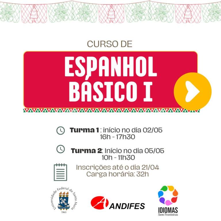 A Rede – Idiomas sem Fronteiras, através do Núcleo de Línguas da UFSM, divulga vagas gratuitas para cursos onlines de espanhol. As inscrições vão até terça-feira, dia 25 de abril de 2023.