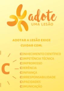 Adotar uma lesão é um processo em que o profissional da saúde adota a lesão cutânea, mas com corresponsabilidade do paciente e de seus cuidadores e com cuidado multiprofissional, até a reepitelização completa da lesão. É com essa proposta primordial que surgiu o projeto o adote lesão, baseado em 8 princípios: conhecimento, competência, compromisso, coerência, confiança, corresponsabiolidade, capacidade e comunicação.
