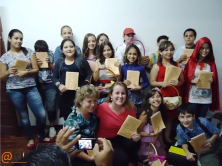 Alunos-autores da escola Marieta D’Ambrosio com suas produções no Ateliê de Textos.