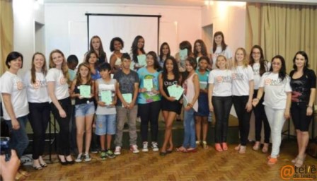 Alunos-autores das escolas Celina de Moraes e Margarida Lopes no lançamento de suasproduções no Ateliê