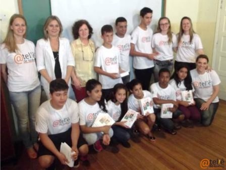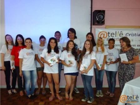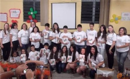 Alunos-autores da escola Júlio Prates de Castilhos no lançamento de suas produções
