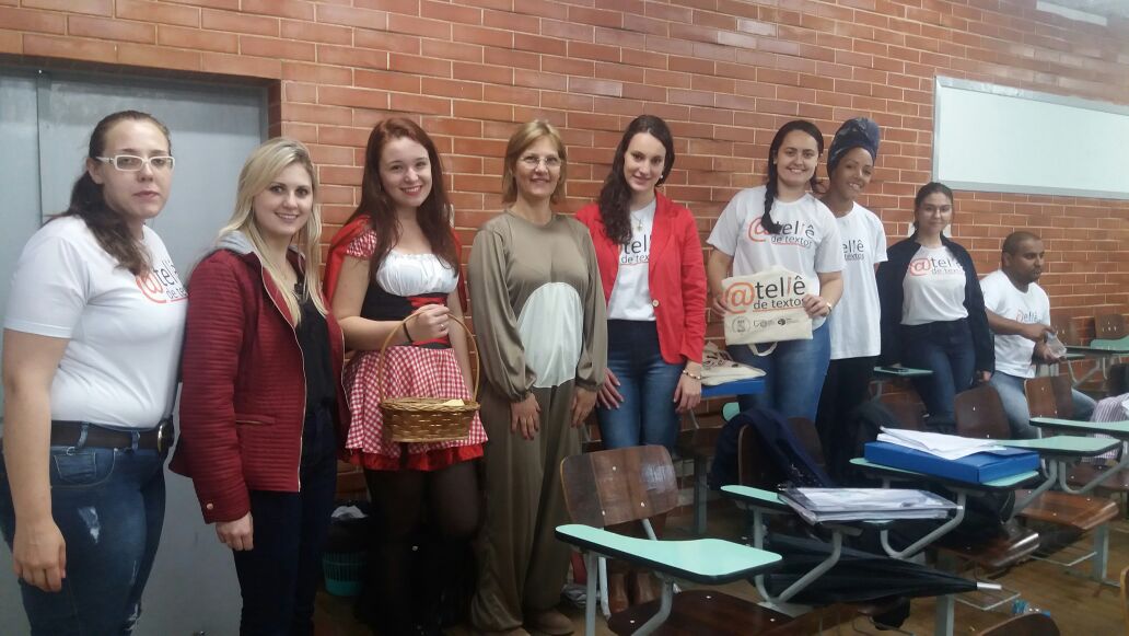Integrantes do Ateliê de Textos com os figurinos utilizados na contação de estórias.