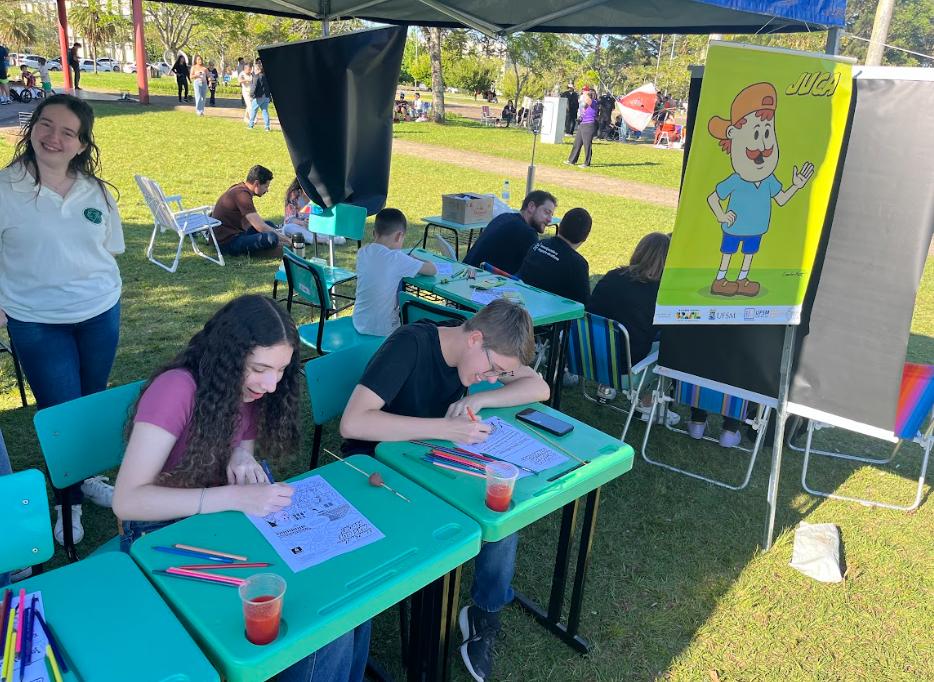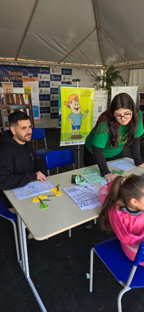 Integrando a programação do estande da Universidade Federal de Santa Maria (UFSM), organizado pela Pró-Reitoria de Graduação (Prograd) e pela Pró-Reitoria de Extensão (PRE), o Juca nas Escolas desenvolveu ações de divulgação de suas atividades e materiais pedagógicos voltados à Agenda 2030 e aos Objetivos de Desenvolvimento Sustentável. A participação do programa possibilitou o diálogo com estudantes, educadores e comunidade em geral, aproximando os debates globais de sustentabilidade do público visitante.