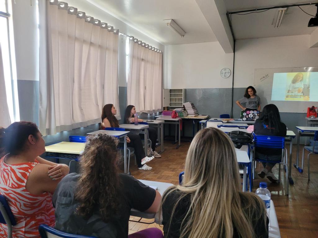 Na tarde da sexta-feira, 24 de outubro, a turma de Educomunicação da UFSM realizou, fazendo parte do Programa Mão na Mídia, uma oficina de comunicação acessível nas redes sociais, na Escola Estadual de Ensino Médio Cardeal Roncalli. O encontro teve como objetivo compartilhar conhecimentos com alunos da turma 104 sobre temáticas de acessibilidade nas redes sociais. O tema foi de grande interesse dos envolvidos, devido à turma ter uma aluna com deficiência visual.