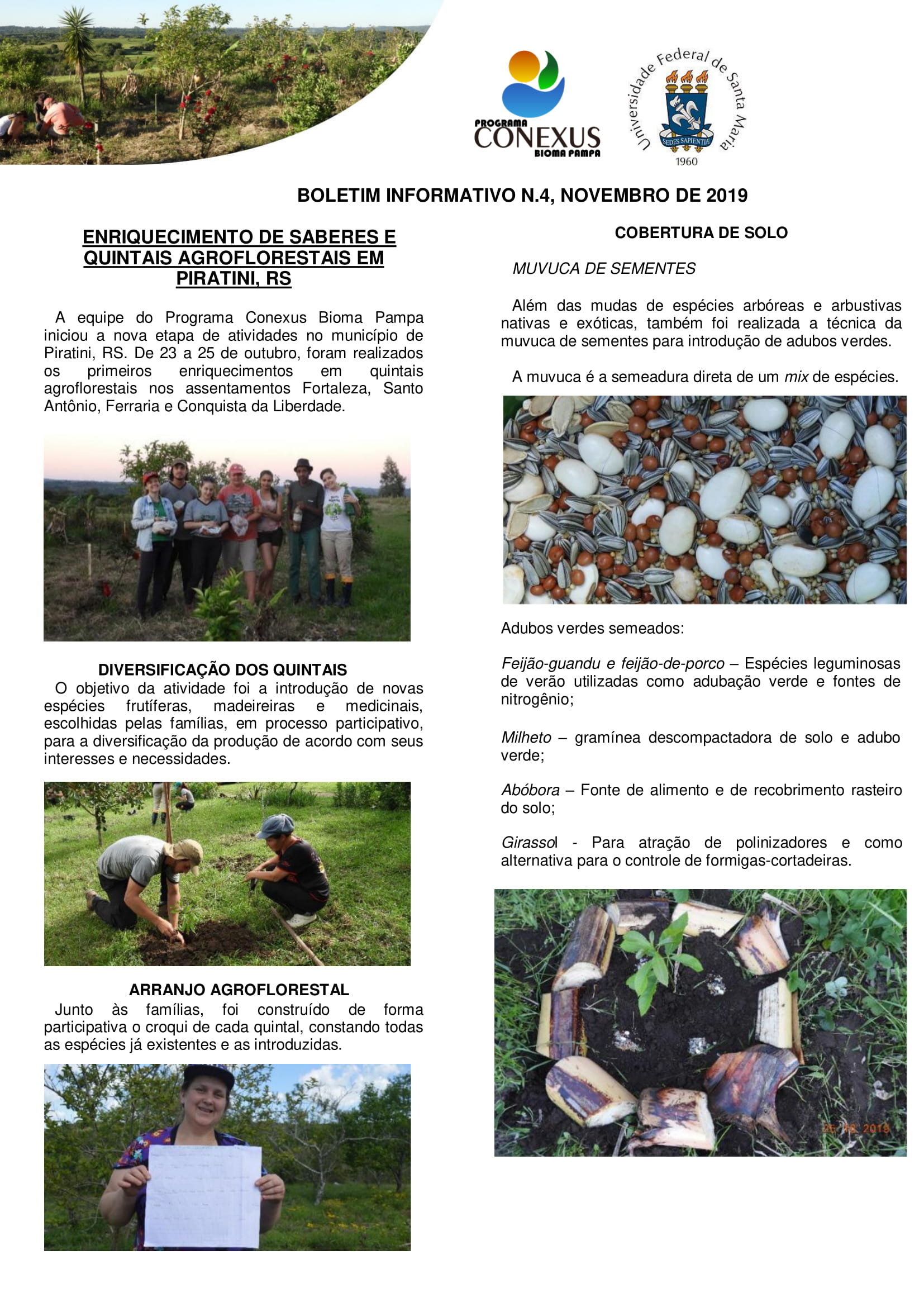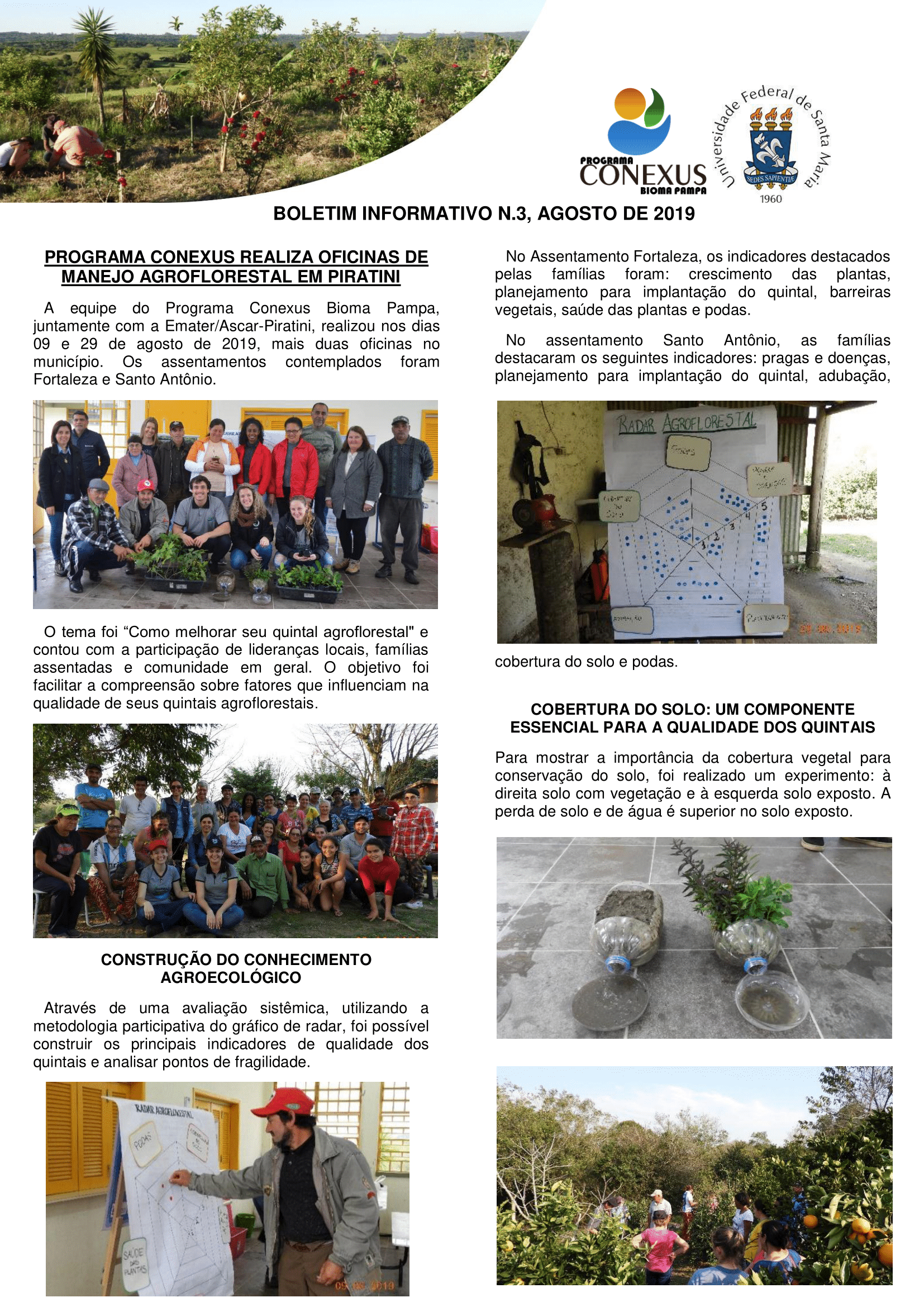Oficina em Piratini reúne 30 famílias assentadasA equipe do Programa Conexus Bioma Pampa realizou no dia 29/08 mais uma oficina de “Como melhorar seu quintal agroflorestal?”, no assentamento [...]