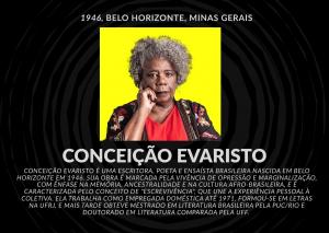 Maria da Conceição Evaristo de Brito nasceu em Belo Horizonte, em 1946. De origem humilde, migrou para o Rio de Janeiro na década de 1970. Graduada em Letras pela UFRJ, trabalhou como professora da rede pública de ensino da capital fluminense. É Mestre em Literatura Brasileira pela PUC do Rio de Janeiro, com a dissertação Literatura Negra: uma poética de nossa afro-brasilidade (1996), e Doutora em Literatura Comparada na Universidade Federal Fluminense, com a tese Poemas malungos, cânticos irmãos (2011), na qual estuda as obras poéticas dos afro-brasileiros Nei Lopes e Edimilson de Almeida Pereira em confronto com a do angolano Agostinho Neto. Participante ativa dos movimentos de valorização da cultura negra em nosso país, estreou na literatura em 1990, quando passou a publicar seus contos e poemas na série Cadernos Negros. Escritora versátil, cultiva a poesia, a ficção e o ensaio. Desde então, seus textos vêm angariando cada vez mais leitores. A escritora participa de publicações na Alemanha, Inglaterra e Estados Unidos. Seus contos vêm sendo estudados em universidades brasileiras e do exterior, tendo, inclusive, sido objeto da tese de doutorado de Maria Aparecida Andrade Salgueiro, publicada em livro em 2004, que faz um estudo comparativo da autora com a americana Alice Walker. Em 2003, publicou o romance Ponciá Vicêncio, pela Editora Mazza, de Belo Horizonte.
